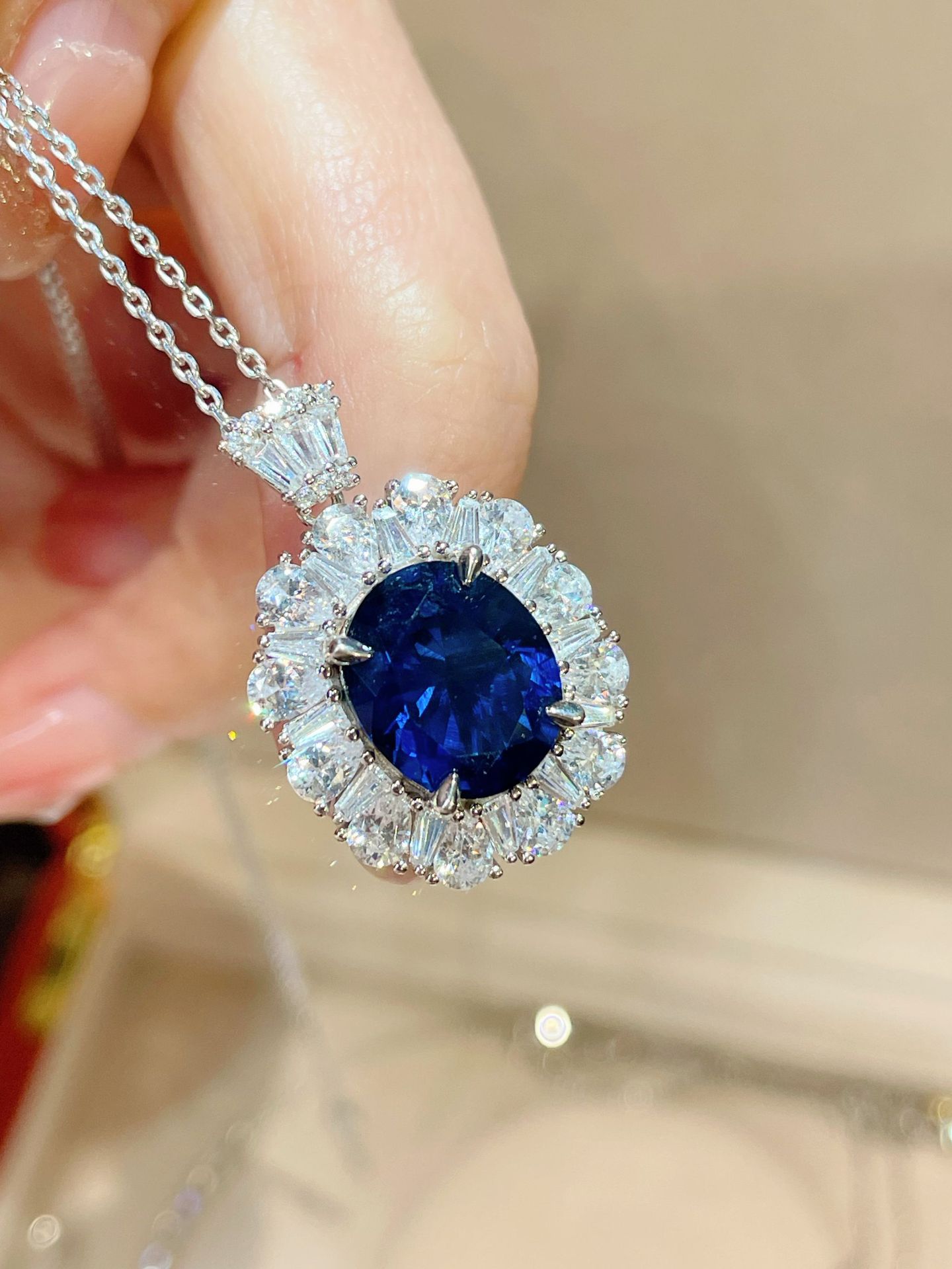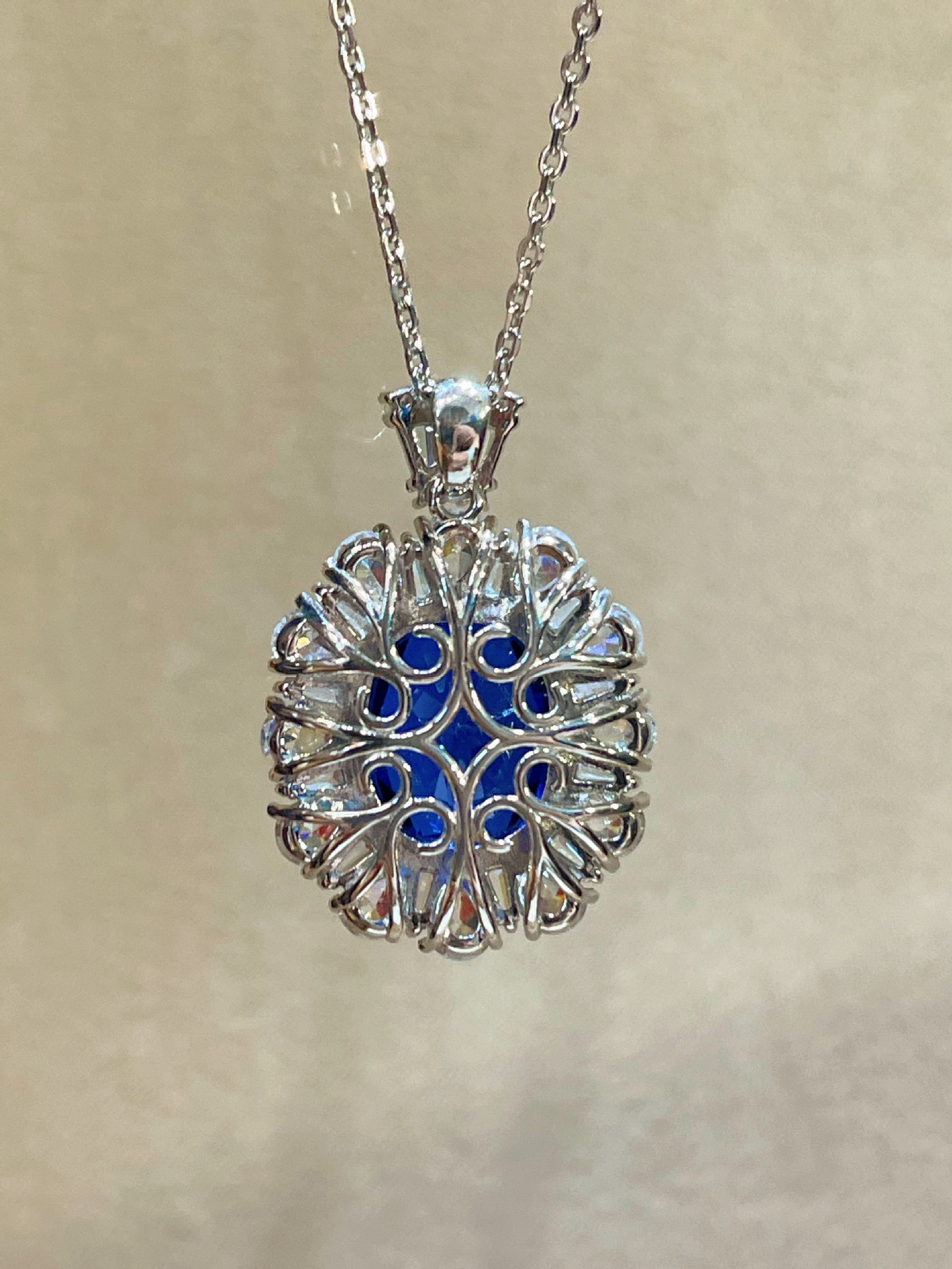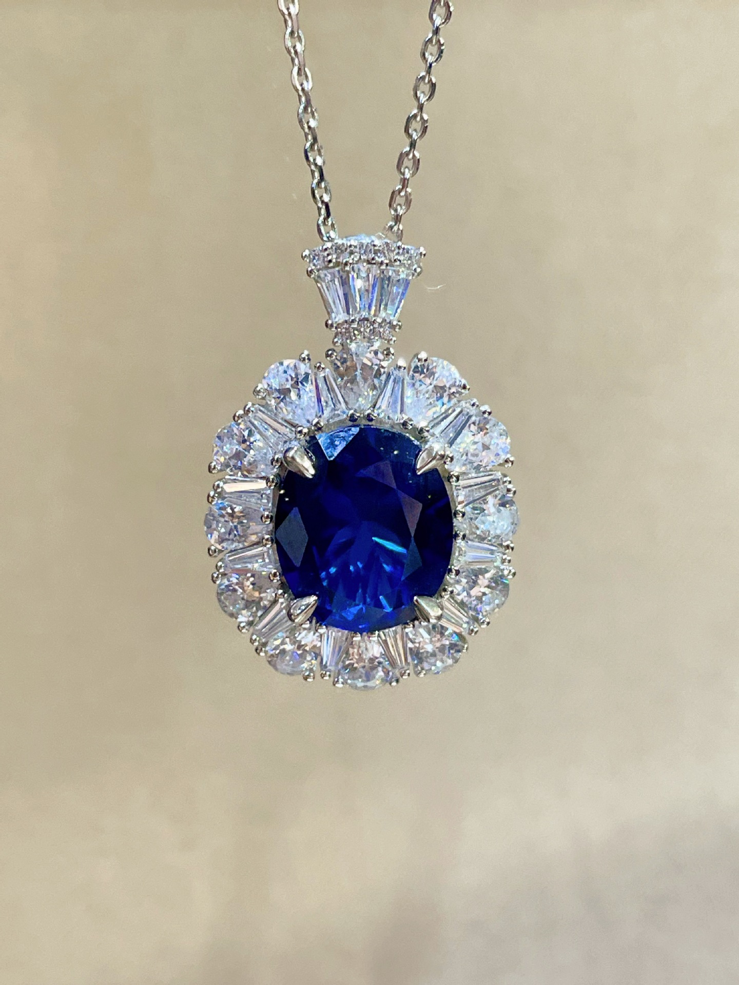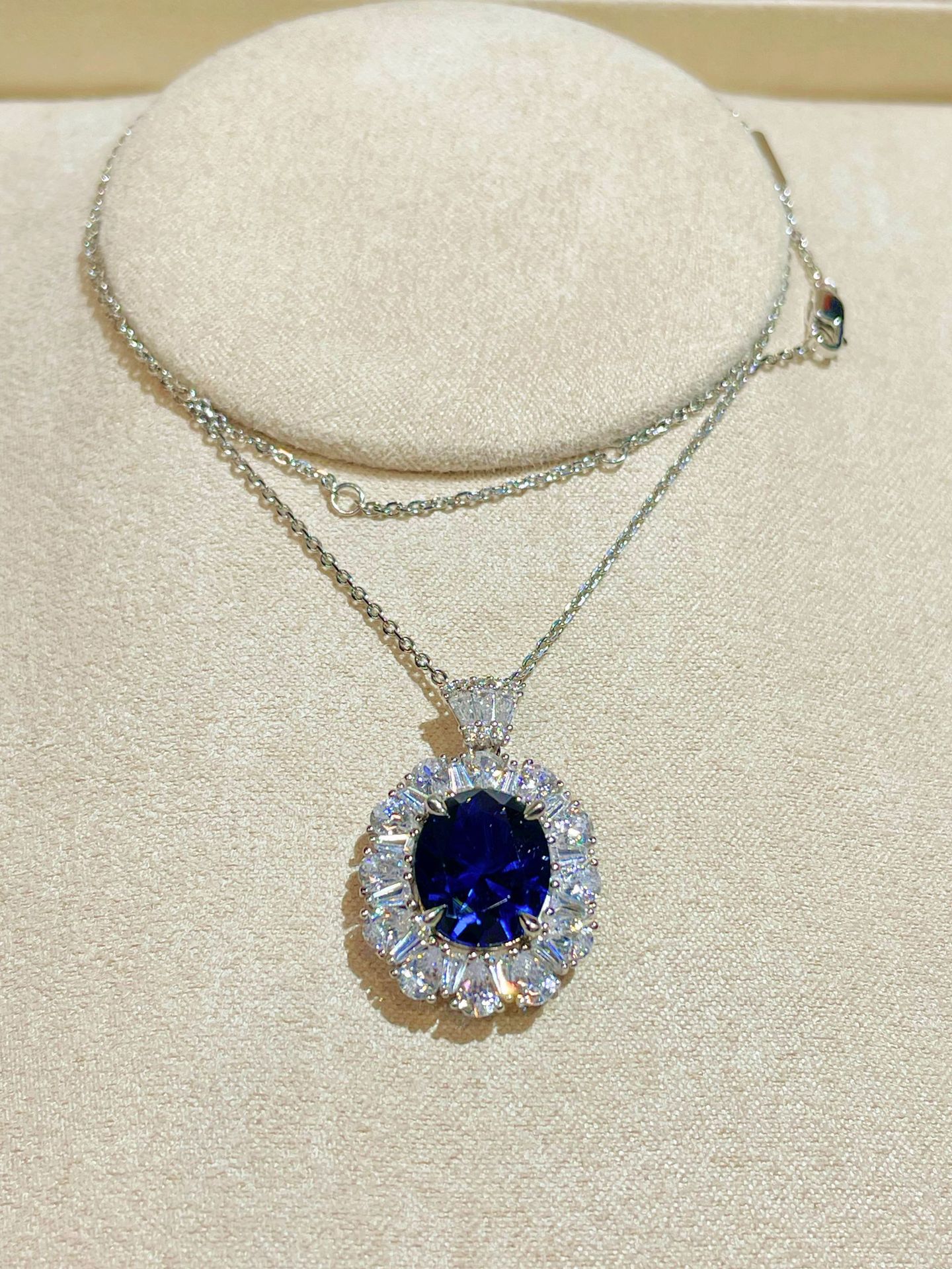 • Exquisite Design: Features a stunning sapphire pendant that captures light beautifully for a dazzling effect.